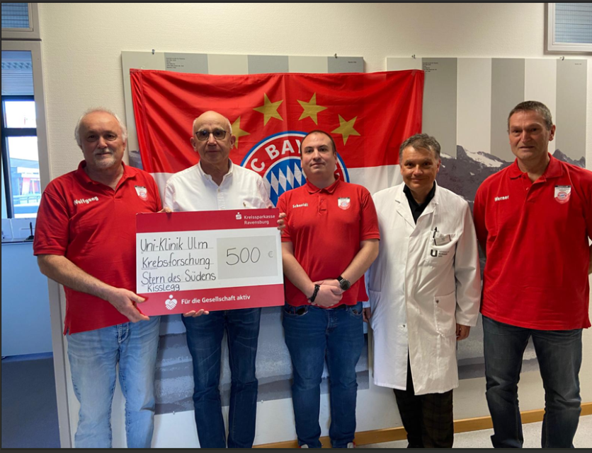 Kißlegg/Ulm – Der FC Bayern Fanclub „Stern des Südens“ Kißlegg setzt seine seit 2018 bestehende Tradition fort: Am 26. Februar übergab die Vorstandschaft eine Spende in Höhe von 500 Euro an die Leukämie- und Krebsforschung der Uniklinik Ulm.